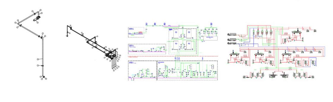 Projeto, detalhamento, lista de materiais, de fluxogramas de processos e isométricos.